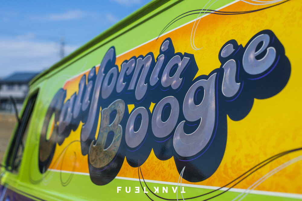 Following the outlandish fashions of the time, an explosion of side pipes, murals and velvet interiors hit. “Sedate” was not a part of vanning vocabulary, and it showed. Vans were bought cheaply and modified by their owners, who embraced the DIY spirit and easy-going attitude of the times. Characterised by wild paint jobs, altered stances and groovy lettering, the vans of the ‘70s became cartoonish, very much a marker of place and time. They became known as ‘Boogie Vans’; part muscle car, part party wagon. Vanning was so popular, Time Magazine declared it an “American craze” in 1977. Arguably one of the most influential forces in the scene was the Mooneyes brand, founded in the ‘50s by Dean Moon in California.