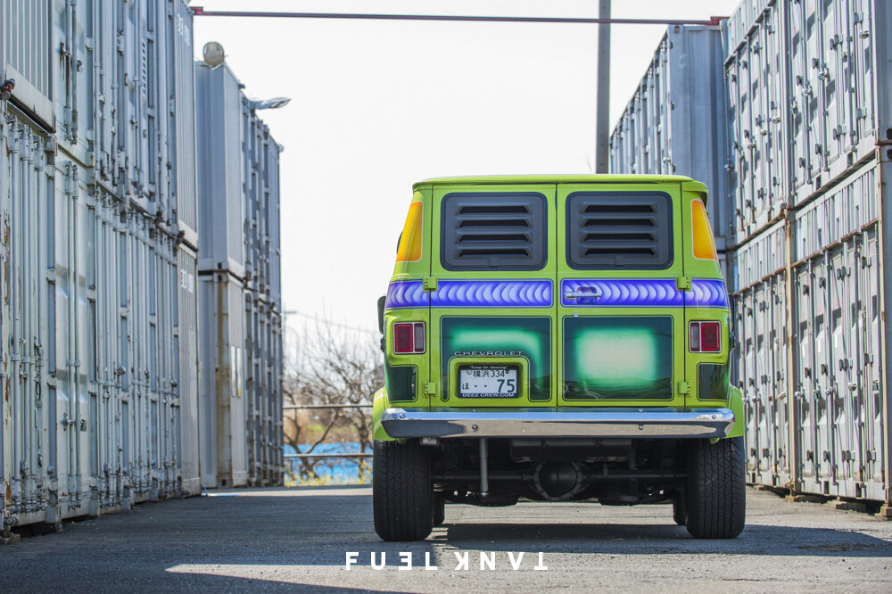 Japan, March 2017. It’s the first shoot of the trip and we get stuck right in with one of the coolest custom vans that you’ll ever see. The guys at Deez Crew in Yokohama are the go-to shop in Japan for custom van projects, so a visit was a high priority. We were spoiled for choice regarding which particular van to hone in on, but we settled for the juicy-fruit-fresh California Boogie.