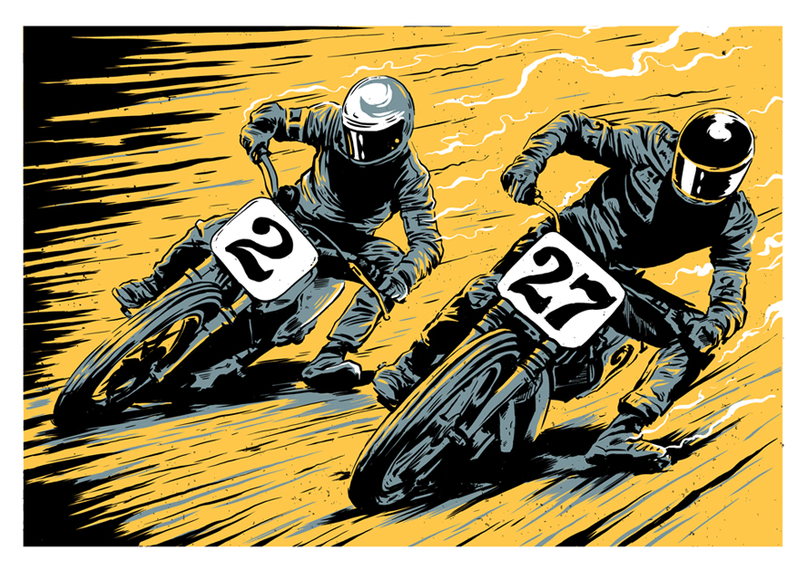I love motorcycles. I love drawing, painting, illustrating. It was a natural progression to mix the two, but I certainly didn’t think I would pretty much make a career from it. Easily 80% of my work is in the motorcycle industry, which is incredible really. It all spawned from Gary Inman asking me to put work into a book he was compiling about motorcycle art. So I didn’t consciously aim for that market, it just found me really and took off from there. I’ve met the best people around motorcycles, so I’m never going to complain about mixing the two passions that’s for sure. I think that the community is so well connected and willing to help people out that my work has spread via word of mouth. Do the best work you can, make the next job better than the previous and stay humble, do that and I think you can make a living at anything!
